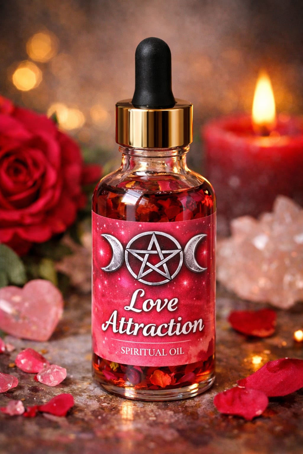 L'huile spirituelle Love Attraction est une essence mystique conçue pour éveiller le pouvoir d'attraction qui sommeille en vous . Chargée d'énergies d'amour et de séduction, elle agit comme un véritable aimant vibratoire capable d'attirer les regards, de réveiller le désir et de favoriser les rapprochements sentimentaux.